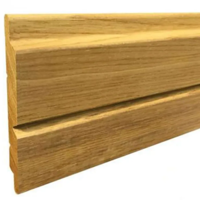 Elephant rabatdeel Thermo Fraké Stripes M dubbele Rhombus. Dikte 1,8 cm. hoogte 13,8 cm en werkende hoogte 12,6 cm. Gevelbekleding met een speciale ventilatiesponning aan de achterzijde. Bij het plaatsen dien je rekening te houden met de werking (krimp- en zwelgedrag) van het hout. Het mes mag niet volledig in de sponning lopen, houdt rekening met +3 mm zwelruimte.