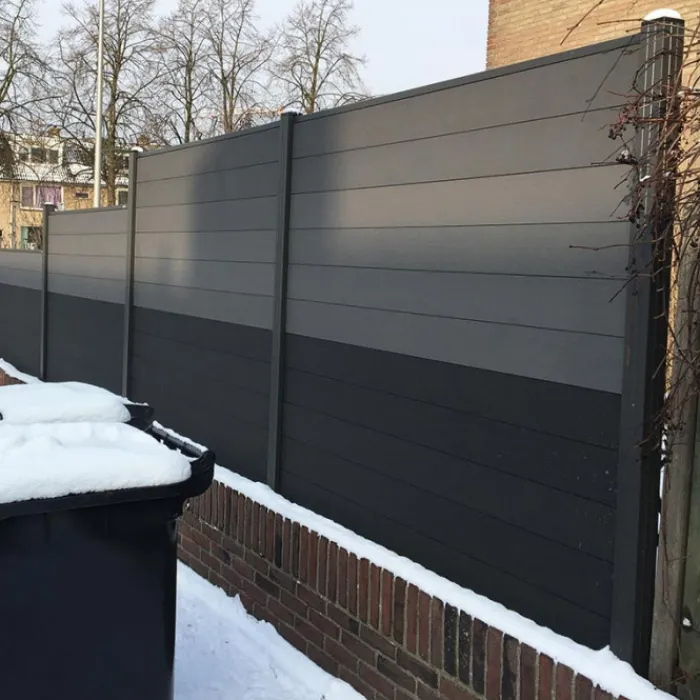 Deze set bestaat uit 2 composiet rock grey lamellen en 10 composiet bicolorgrijs lamellen. Je begint onder en je eindigt bovenop altijd met een aluminium antraciete profielen. exclusief palen! Gebruik hiervoor altijd de Elephant Modular/Mix&Match sleufpalen.