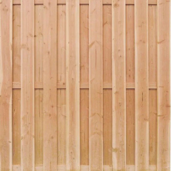 Schutting Douglas recht geschaafd 15L (180 x 180 cm) dikte 4,5 cm, PEFC Duurzaamheidsklasse 3 – 4. De afmetingen van de planken zijn 15 x 140 mm.