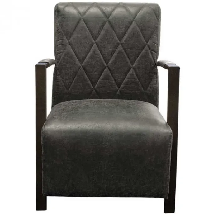 De fauteuil Isabella is een elegante, maar ook een industriële fauteuil met een stevig zitcomfort. De rugleuning is voorzien van een wiebeltjes patroon. Dit geeft deze fauteuil een unieke uitstraling. De poten zijn uitgevoerd met een antracietgrijze coating en zijn voorzien van stoere lasverbindingen aan de voorzijde van de armleuning. De fauteuil past bij iedere woonstijl, van klassiek tot modern en van landelijk tot trendy. Een heerlijke stoel om lekker in weg te kruipen voor de kachel of de televisie. De fauteuil is bekleed met de antraciet-kleurige lederlook stof Missouri 09.