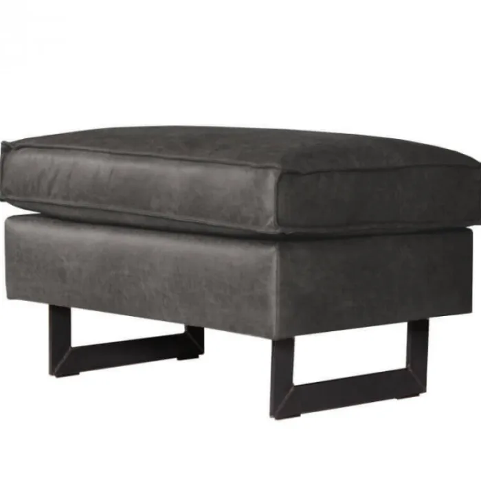Deze Riverdance poef kan gebruikt worden als lounge-element, maar kan ook prima dienen als tafel, wanneer je hier een groot dienblad op plaatst. De poef is uitgevoerd in de antraciet-kleurige leersoort Colorado en past hierdoor goed bij alle banken, en dan met name de banken uit de Riverdance serie. Deze poef wordt geleverd met unieke industriële sleepoten.