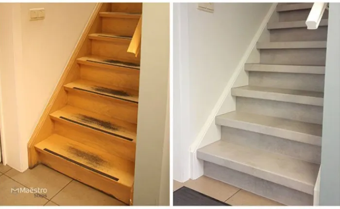 Maëstro Steps open trapprofiel Light Grey Stone 130 x 7 cm, ten behoeve van de afwerking van de achterzijde van de trede. Dit is als ware een extra ‘neus’ zoals deze ook op de treden zitten.