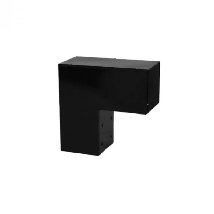 Plus hoekstuk van gegalvaniseerd zwart staal uit de serie Cubic. Afmeting: 20 x 20 cm. Geschikt voor palen van 9 x 9 cm. Exclusief schroeven.