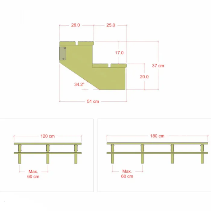 Plus Danmark tuintrap hout 2 treden. Wordt geleverd inclusief houten treden en stootborden. Maak met dit pakket je eigen trap, geschikt voor 2 treden. Inclusief schroeven om de thermisch verzinkt stalen beugels te bevestigen (5x30mm en 5x50mm)