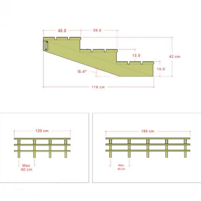 Met deze luie tuintrap is gedacht aan gemak en comfort. Door de geleidelijke helling (19 graden) wordt het gemakkelijk om zonder te veel inspanning de trap op te komen. De tuintrap is voor 3 treden en is gemaakt van geimpregneerd hout.
