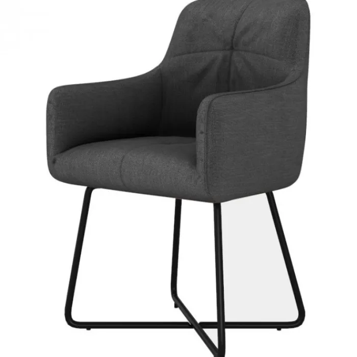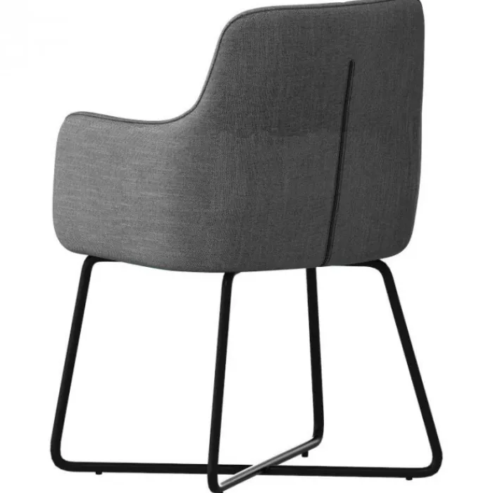 Bo Lundgren eetkamerstoel Arne, stof Bjorn grof geweven, kleur donker grijs. De eetkamerstoel Arne is een fraaie eetkamerstoel gestoffeerd met een grof geweven stof in de kleur donker grijs. Het kuipvormige model zorgt ervoor dat de stoel heerlijk comfortabel zit! Zo kun je urenlang heerlijk tafelen…! De Arne is uitgevoerd met een zwart metalen onderstel. Deze geeft de stoel een klassieke uitstraling.
