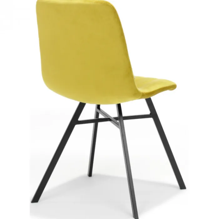 De eetkamerstoel Dex is een trendy eetkamerstoel gestoffeerd met een prachtige velours stof in de kleur okergeel. Het kuipvormige model geeft de stoel niet alleen een mooie look, maar zorgt er ook nog eens voor dat de stoel heerlijk comfortabel zit! Zo kun je urenlang heerlijk tafelen…! De Dex is uitgevoerd met zwarte metalen poten. Deze stoel heeft een enigszins klassieke uitstraling, maar kan ook uitstekend tot zijn recht komen in een wat stoerdere interieur!