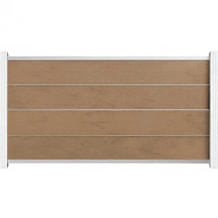 C-Wood zelfbouw schutting composiet Modular teak met wit aluminium accessoires. Geschikt om een scherm te maken van 97 cm hoog en maximaal 180 cm breed. De breedte is eenvoudig in te korten.