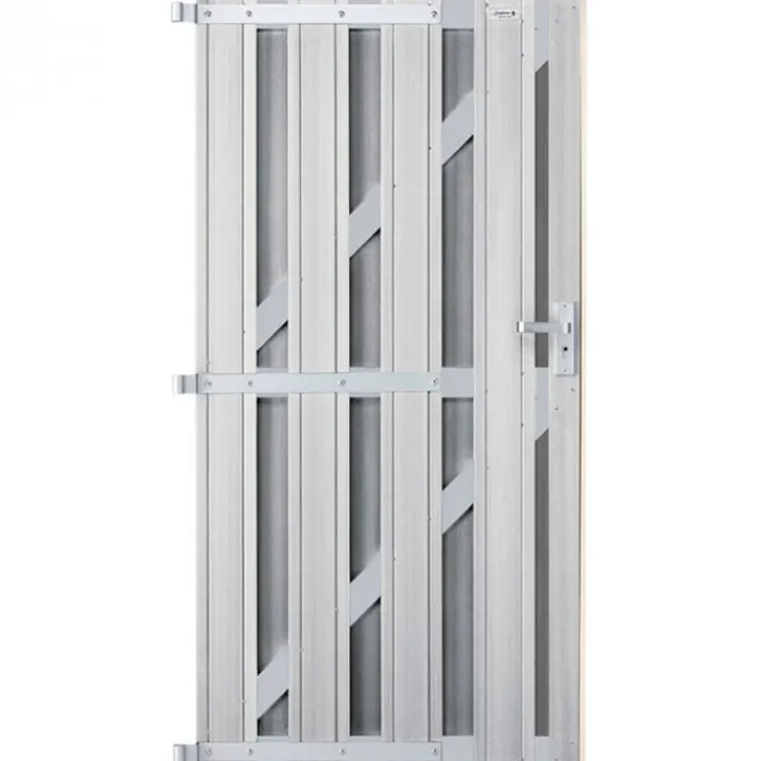 Elephant tuindeur composiet design grijs met blank aluminium frame compleet (90 x 180 cm). Wordt geleverd inclusief aanslaglijst, hang- en sluitwerk, slot, sleutels en grijze liggers.