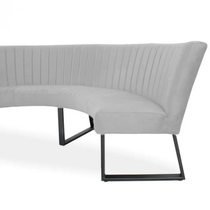 HomingXL ronde eetkamerbank geschikt voor een ronde tafel met een diameter van 150 cm. Deze stoere halfronde eetkamerbank Hengelo is gestoffeerd met de prachtige Element velours stof in de kleur antraciet. De bank is uitgevoerd met zwarte metalen poten. Deze eetkamerbank heeft een stoere uitstraling en is zowel geschikt voor een industrieel als een modern interieur.