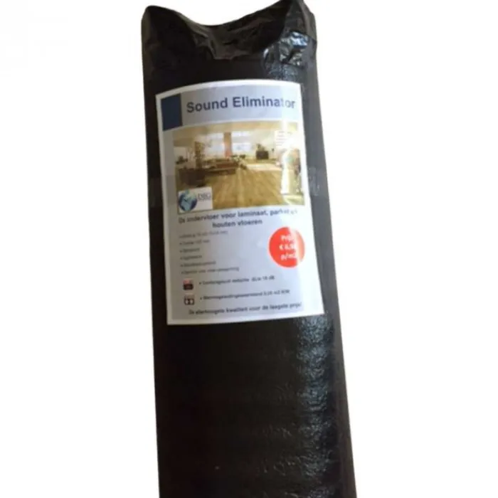 HomingXL ondervloer voor houten vloeren. Sound Eliminator rol à 15 m2. Geschikte ondergrond is een beton vloer, hierop komt de ondervloer en daarna de houten vloer.