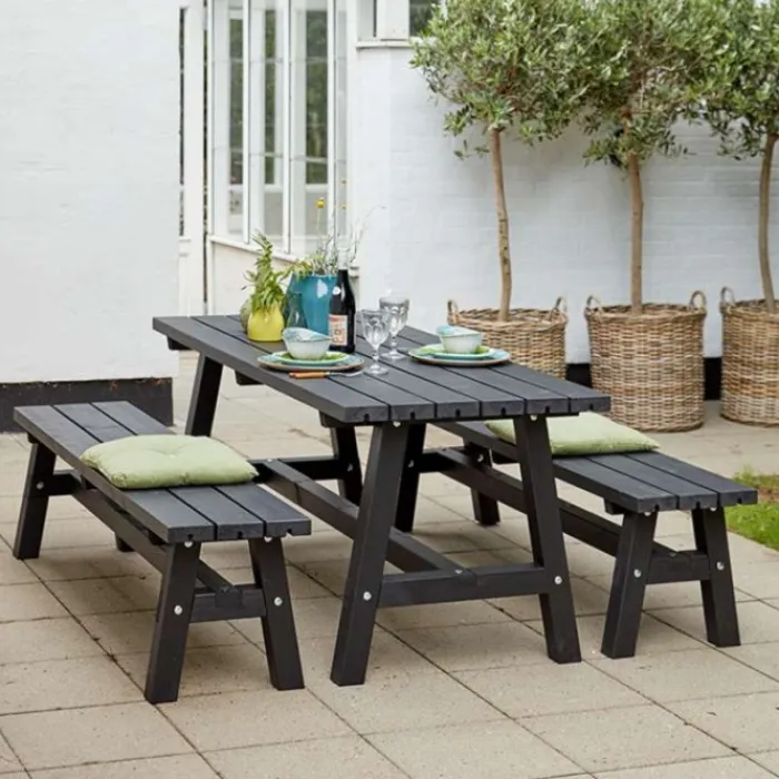 Plus Danmark bank vuren Country gegrond in de kleur zwart (RAL 9005). De losse bank is 177 cm lang, 37 cm breed en 46 cm hoog. De bank is geschikt voor 3 personen.
