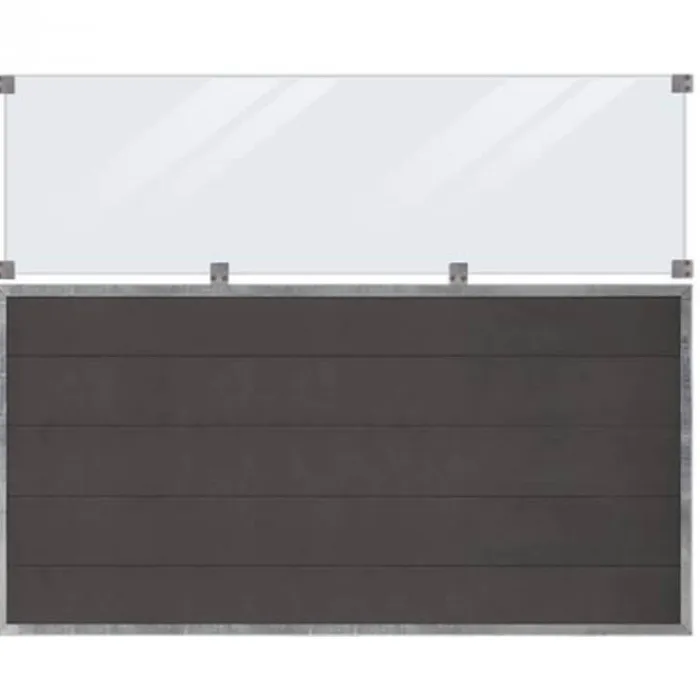 Outlet Plus Danmark Schutting composiet & glas in stalen frame – Futura recht antraciet (180 x 144 cm)