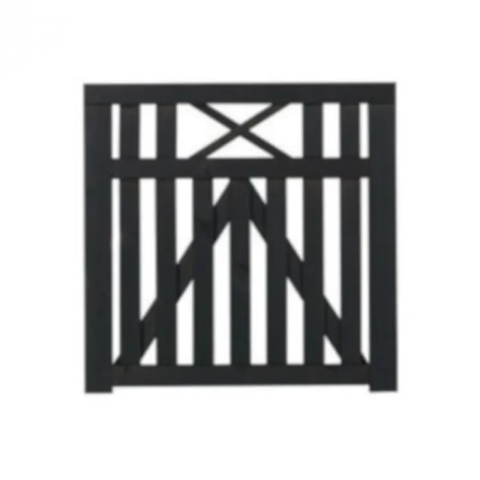 Plus tuinpoort recht vuren geimpregneerd en zwart afgelakt uit de serie Vinesse. De afmetingen van deze poort zijn 100 x 98 cm (b x h) en de dikte is 4,4 cm. RVS geschroefd.