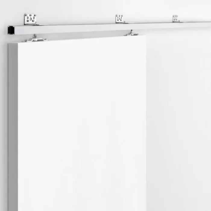 Geanodiseerde aluminium bovenrail en 2 loopwagens voor de bovenzijde van de deur. Het Swipe schuifdeursysteem is in bijna alle situaties toe te passen.