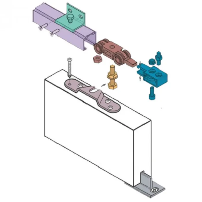 – Geleiding met kunststof loopwagens boven en geleidenokje op de vloer