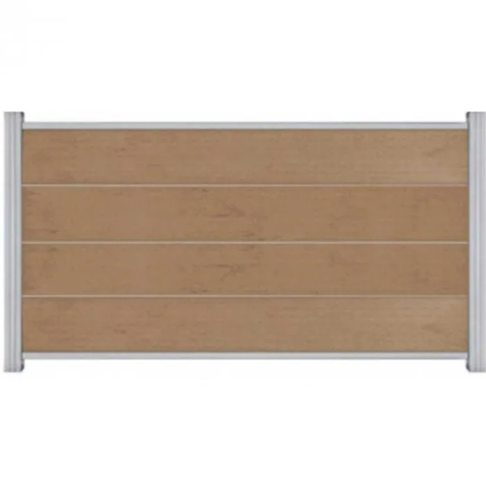 C-Wood zelfbouw schutting composiet Modular teak met blank aluminium accessoires. Geschikt om een scherm te maken van 97 cm hoog en maximaal 180 cm breed. De breedte is eenvoudig in te korten.
