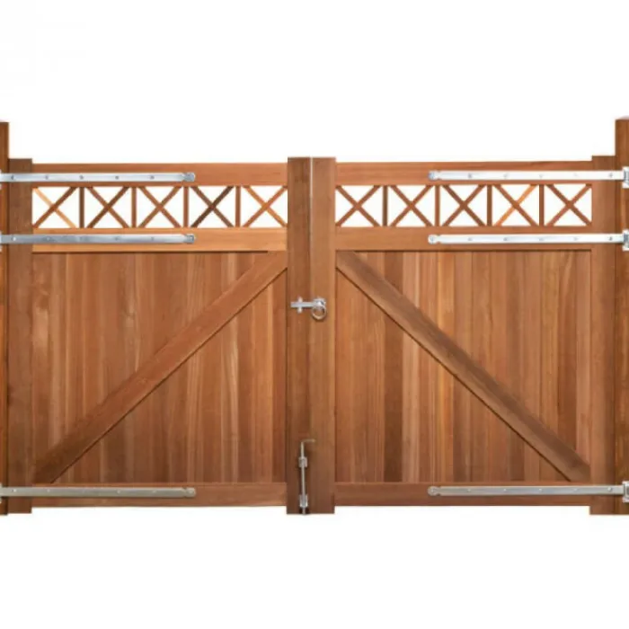 De poort wordt geleverd inclusief hengen en duimen, om de poort te monteren aan de palen. Voor sluiting zit er een rozetklinkstel bij en een grondpin.