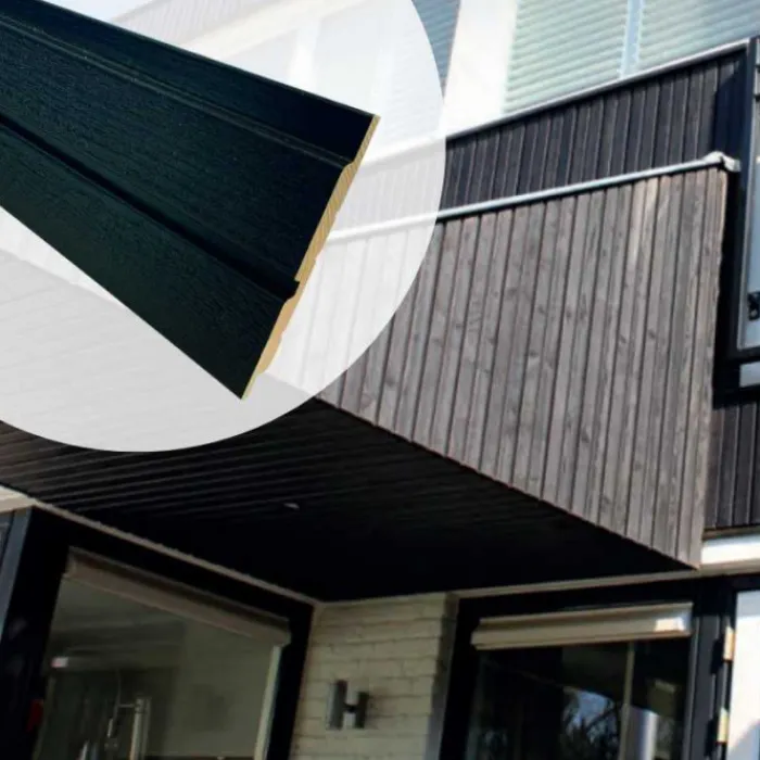 Rhombusprofiel Vuren verduurzaamd zwart 1,9 x 13 cm fijnbezaagd. Deze plank wordt toegepast voor een dichte wand- of gevelafwerking. Thermisch gemodificeerd hout is hout dat is verhit (boven 180 graden) in een zuurstofarme omgeving. Hierdoor verdwijnt schimmel en vocht en werkt het hout minder, is harder en weegt ook minder.