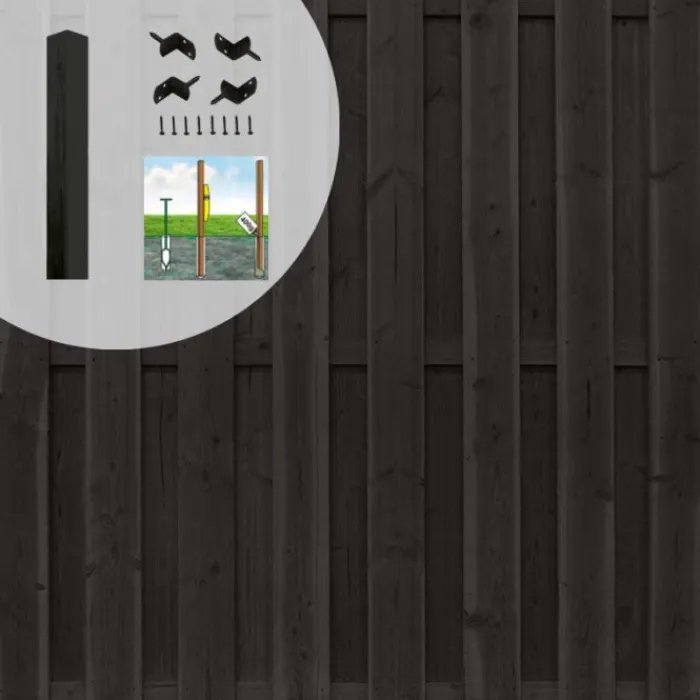 Complete set van 5 tuinschermen vuren 180 x 180 cm. Aangevuld met 6 zachthouten tuinpalen 7 x 7 cm met een lengte van 270 cm. Hiermee kun je een afscheiding maken van maximaal 9,42 meter breed en 1,80 meter hoog.