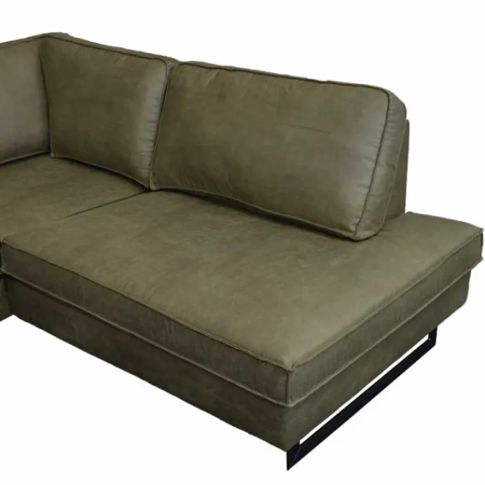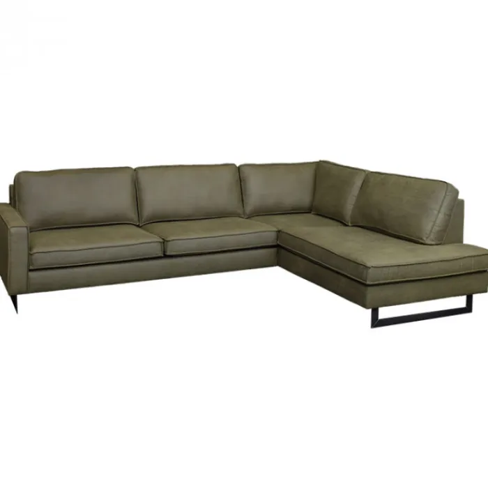 De hoekbank / loungebank Riverdance is een stoere en robuuste loungezit met een rechte armleuning. Deze ruime bank is geschikt voor vrijwel ieder interieur en wordt geleverd met unieke industriële stalen sleepoten. De sleepoten zijn zwart van kleur. Deze bank is bekleed met Dalton leer in de kleur groen. Het zitcomfort is comfortabel door gebruik een hoogwaardige koudschuim vulling met siliconen afdekking.