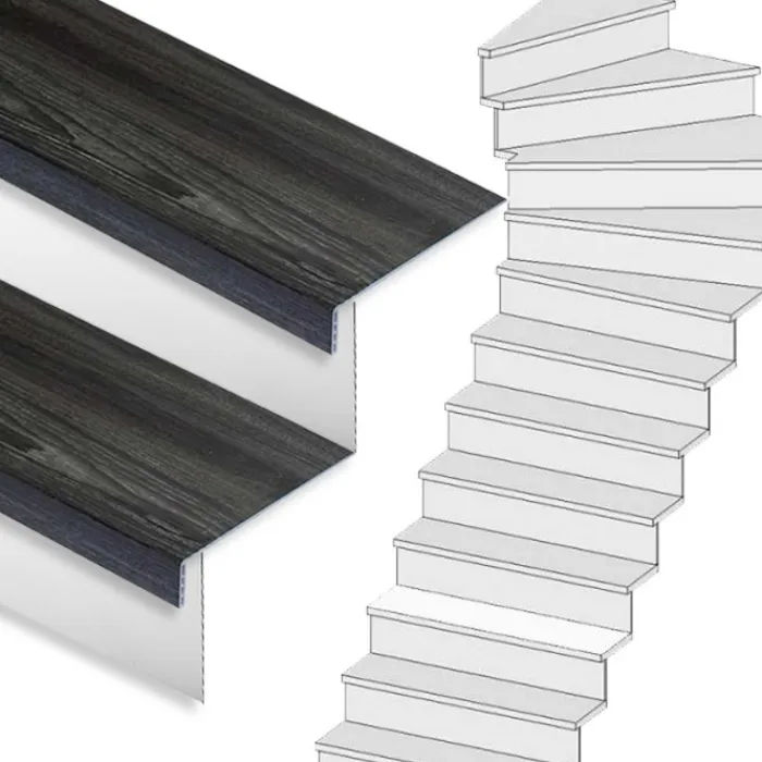 Dit is een complete Stepwoord traprenovatieset met SPC toplaag traptreden in de kleur antraciet en witte stootborden, inclusief montagekit en afwerkingskit. Deze complete set is geschikt voor een trap met 1 kwart draai met 14 treden. De set wordt geleverd inclusief witte stootborden, omdat het een set voor een dichte trap betreft.