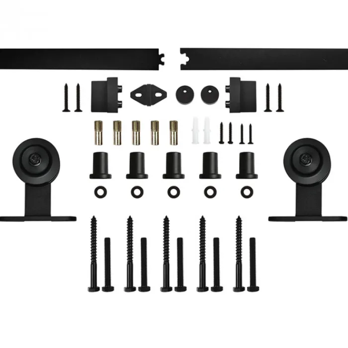 Inhoud pakket: rollers, deurstopper, vloergeleider, rail, wandmontageset, schroefsets.