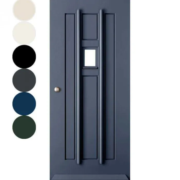 Deze industriële voordeur uit de serie City Line is gemaakt van Merbau hardhout. Deze voordeur heeft een stoere retrolook en is voorbehandeld met een grijs kleurige Prime Quality verf. Deze is gemaakt op basis van alkydhars (120 mi Sigmalitch A22). Na de montage dient de deur nog afgelakt te worden in de gewenste kleur voor de garantie (zie ook de bijlage verwerkingsvoorschriften, garantie en voorwaarden). Het is ook mogelijk om de deur af te laten lakken tegen een meerprijs. Het is hierbij aan te raden om voor alle deelbewerkingen te kiezen. Ga je bijvoorbeeld zelf scharnieren infrezen, dan dien je deze nogmaals van de benodigde verlagen te voorzien. De Delft is voorzien van een draairaampje. In het draairaampje zit nog geen glas. Dit dient apart erbij bestelt te worden. Je kunt ervoor kiezen om dit zelf te monteren of te laten monteren.