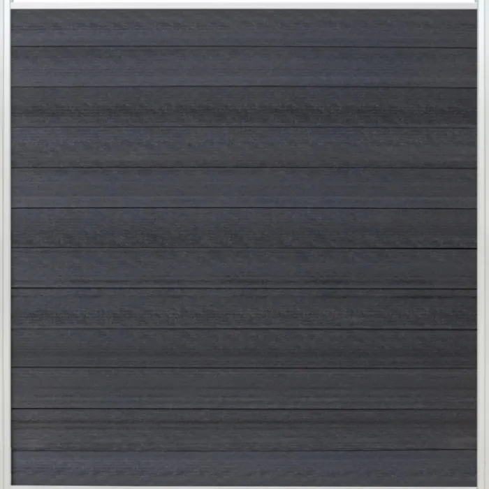 Schutting composiet co-extrusie Garda antraciet met blank aluminium kader (180 x 180 cm). Deze schutting wordt geleverd als een zelfbouw pakket waarmee je zelf een unieke schutting kunt maken.