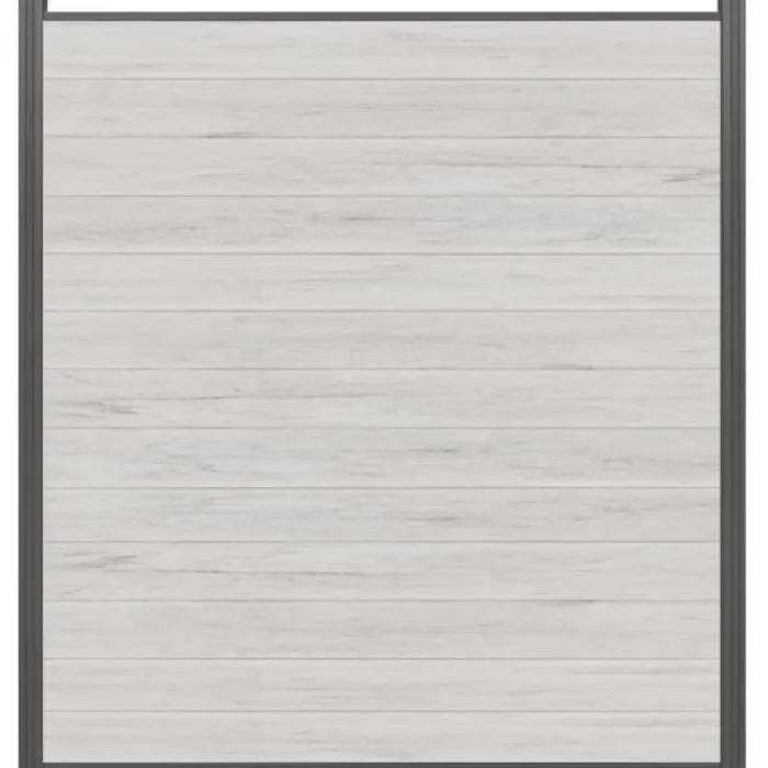Schutting composiet co-extrusie Garda bi-color beige met antraciet aluminium kader (180 x 200 cm). Deze schutting wordt geleverd als een zelfbouw pakket waarmee je zelf een unieke schutting kunt maken.