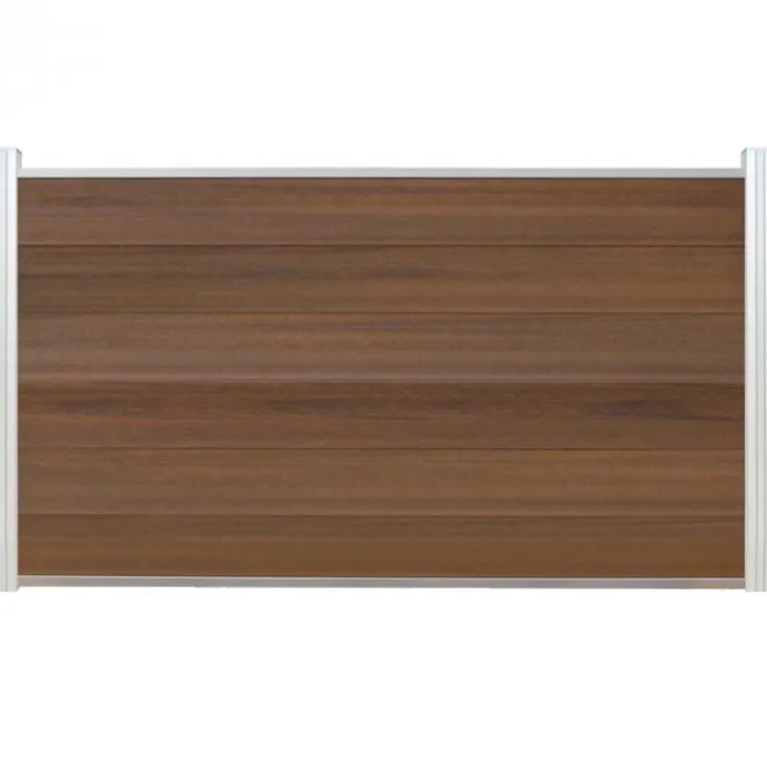 Schutting composiet co-extrusie Garda teak met blank aluminium kader (180 x 90 cm). Deze schutting wordt geleverd als een zelfbouw pakket waarmee je zelf een unieke schutting kunt maken.