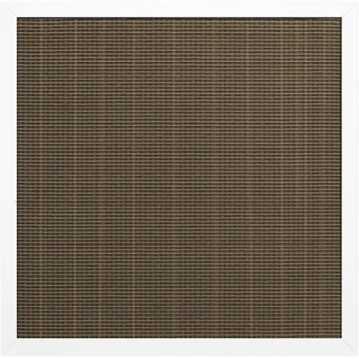C-Wood schutting Sereno 180 x 180 cm. Dit scherm heeft een wit aluminium kader met een textileen vulling in de kleur Mocha Weave. De kern van dit scherm is opgebouwd uit een draadscherm wat aan twee zijden is voorzien van zwart anti-UV doek. Daarop zit aan beide zijden het textileen doek. Dit zorgt ervoor dat het scherm bestand is tegen weer en wind. Het scherm is volledig dicht en geeft veel privacy!