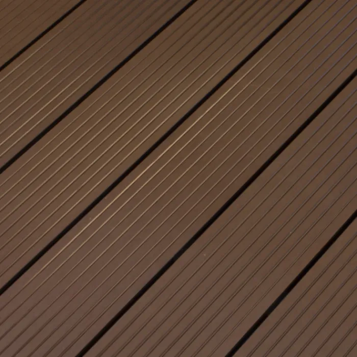 Vlonder totaalpakket voor 1,00 m2, gelegd met donker bruine composiet vlonderplanken van 500 cm lang, 2,1 cm hoog en 14,0 cm breed. Pakket bestaat uit vlonderplanken, onderbalken, clips en schroeven om een vlonderterras van te maken. De bijbehorende clips en de kop van de schroef zijn in dezelfde kleur. Vul het benodigd aantal vierkante meter terras in en de website rekent automatisch uit hoeveel planken je ontvangt.