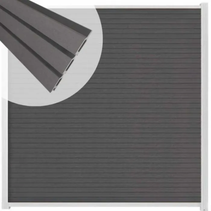 C-Wood zelfbouw schutting composiet Rhombus Triple rock grey met wit aluminium accessoires. Geschikt om een scherm te maken van 200 cm hoog en maximaal 180 cm breed. De breedte is eenvoudig in te korten.