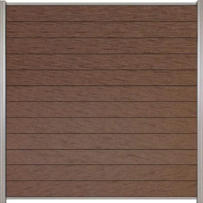 Elephant schutting composiet Mix & Match donkerbruin – blank (180 x 180 cm). Netto hoogte van de schutting is 175 cm. De schuttingdelen schuif je van bovenaf tussen de Elephant Moduler/Mix&Match-palen. De volgorde van de verschillende planken kan je zelf bepalen.