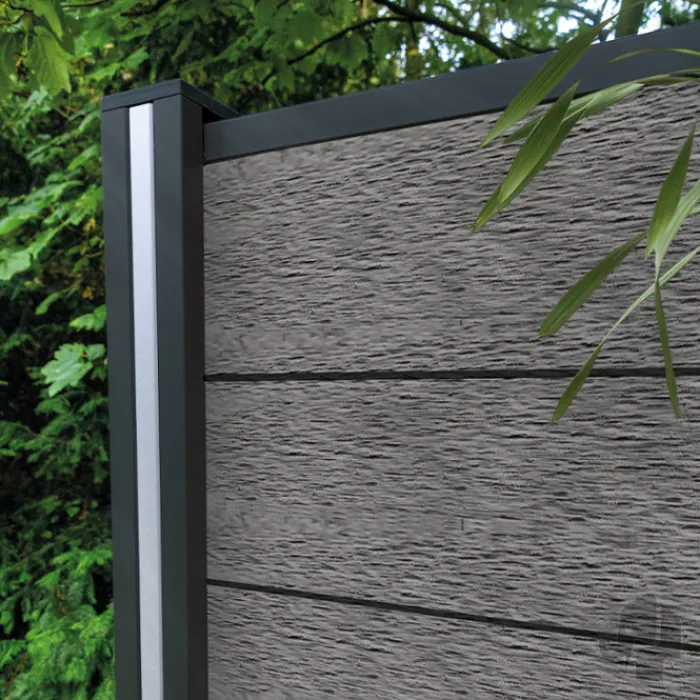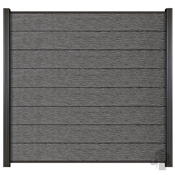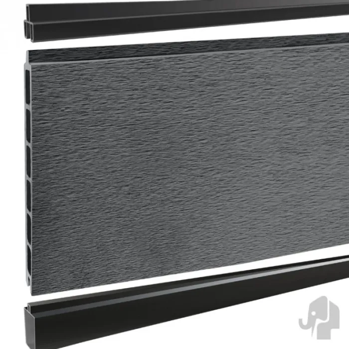 Deze Elephant Modular composiet tuinscherm set bestaat uit 2 afsluitlijsten boven en onder, 1 bevestigingset, 7 veren antraciet aluminium en 8 composiet lamellen. Bestel hierbij de bijbehorende Modular tuinpalen. Je stapelt eenvoudig de schutting tussen de palen in. De netto hoogte van het scherm is enkele centimeters lager dan de opgegeven 180 cm.