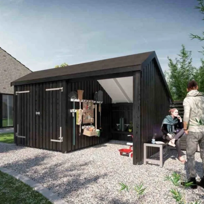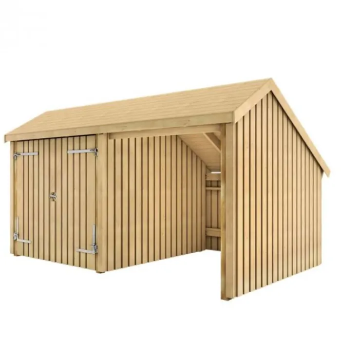 Dit multifunctionele overdekte tuinhuis kan voor verschillende dingen gebruikt worden. Zo kan je dit huis gebruiken om langer buiten te zitten in de avond, een open werkruimte. hout voor je openhaard of als open fietsenstalling. Dit tuinhuis is gemaakt van onbehandeld Scandinavisch sparrenhout (vuren). Doordat de onderdelen onbehandeld zijn kan je alles naar eigen wens verven of beitsen. De vloeroppervlakte is 10,5 m2, maar je hebt een buitenoppervlak van 10,8 m2 nodig.