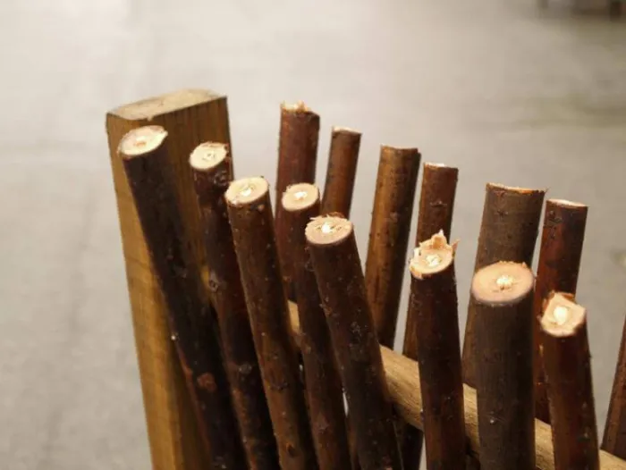 Plus Danmark tuinscherm gevlochten Wilgen Luksus 120 x 140 cm (B x H). Frame bruin gebeitst naaldhout 25 x 45 mm. Wilgen 2-jarige sterke wilgen Ø10-20 mm, voorbehandeld met schimmelwerend middel en olie.