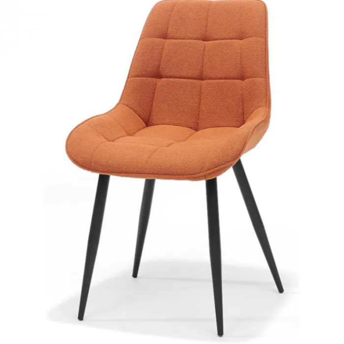 Deze stoel is verkrijgbaar in diverse kleuren en stofsoorten en wordt geleverd met zwart gepoedercoat metalen poten. De verschillende kleuren zijn ook uitstekend met elkaar te combineren. De stoelen beschikken over een hoogwaardige afwerking met decoratieve stiksels.