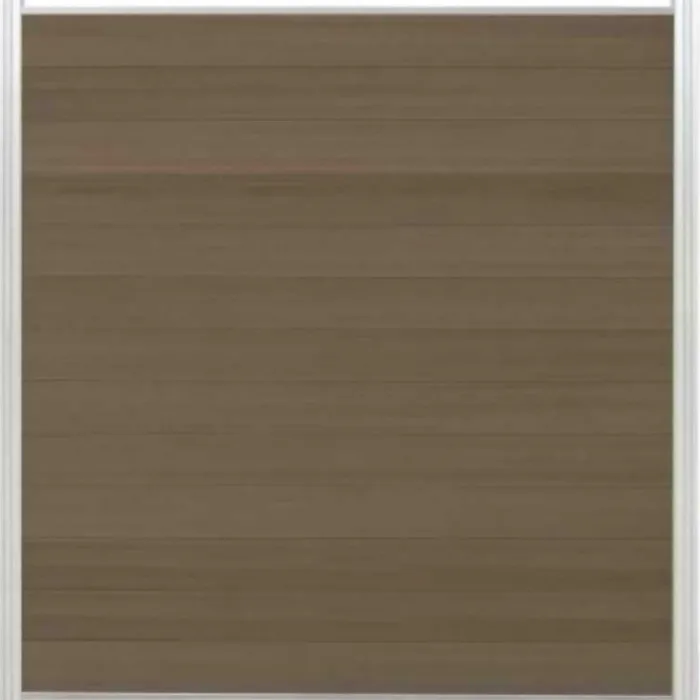 Schutting composiet co-extrusie Garda vergrijsd bruin met blank aluminium kader (180 x 200 cm). Deze schutting wordt geleverd als een zelfbouw pakket waarmee je zelf een unieke schutting kunt maken.