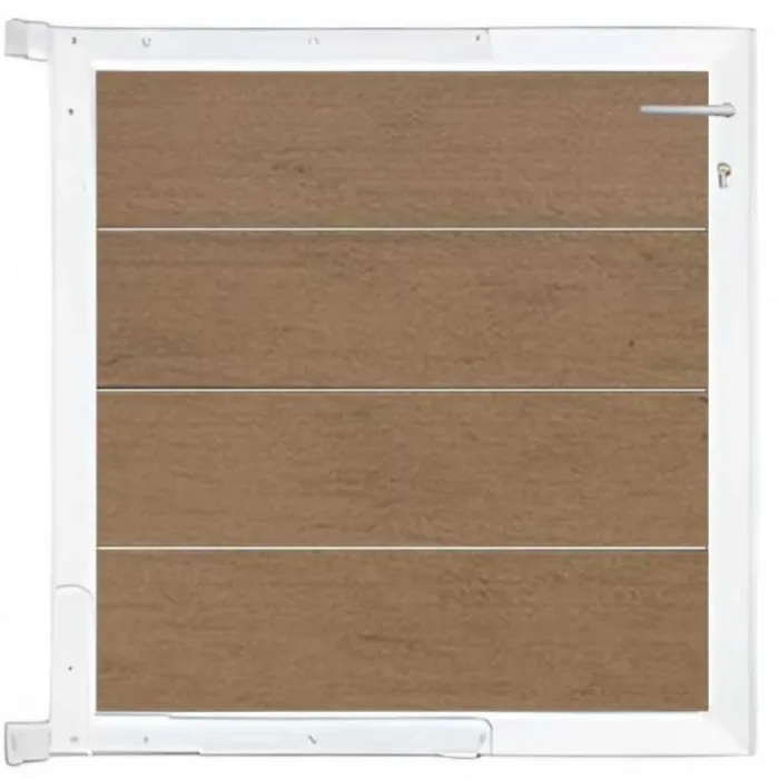 C-Wood zelfbouw tuinpoort aluminium wit frame Modular – composiet bruin gevlamd. Afmeting 90 x 90 cm. De poort wordt geleverd inclusief deurbeslag.