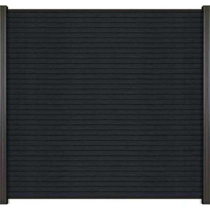 C-Wood zelfbouw schutting composiet Rhombus Triple antraciet met antraciet aluminium accessoires. Geschikt om een scherm te maken van 180 cm hoog en maximaal 180 cm breed. De breedte is eenvoudig in te korten.