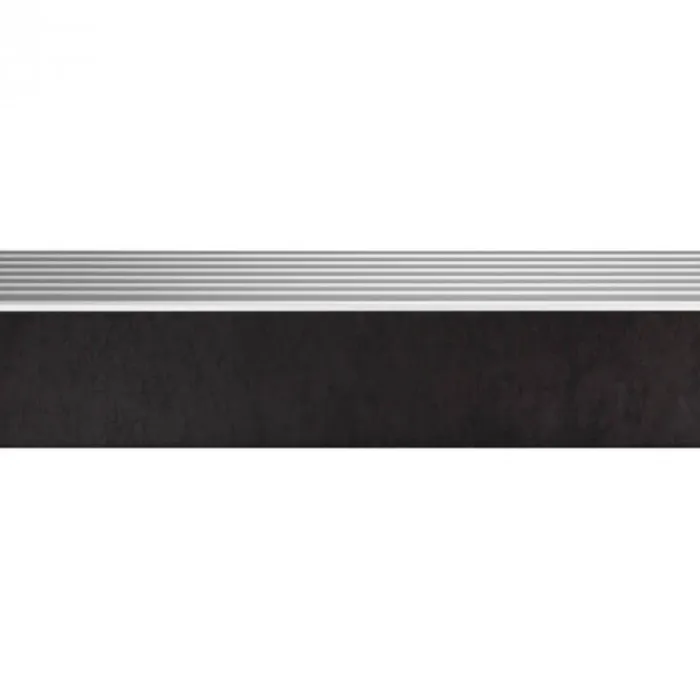 CanDo afwerkprofiel betonlook Antraciet. Formaat is 130 cm breed en ongeveer 5 centimeter hoog (zelfde hoogte als de ‘neus’ van de overzettreden). Dit is een extra ‘neus’ met een aluminium profiel, waarbij je de aansluiting kan maken met de verdiepingsvloer.