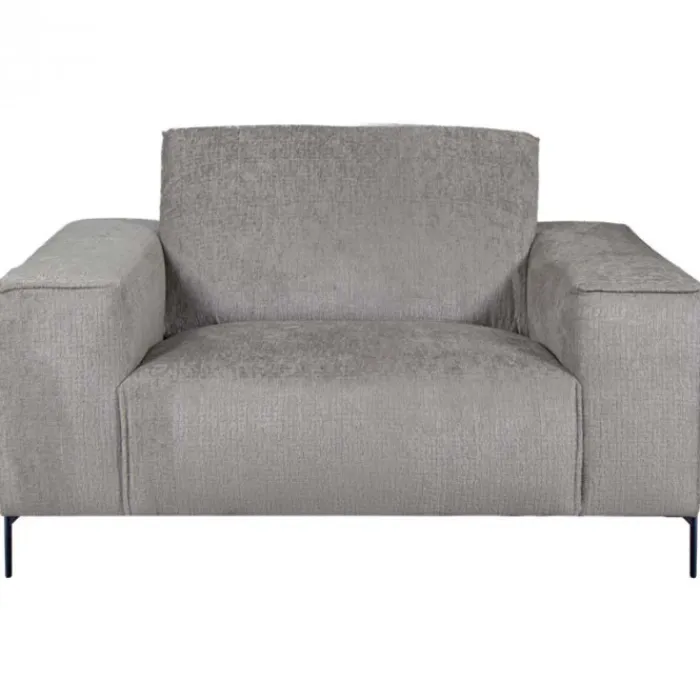 Deze moderne fauteuil met een zeer knuffelbare stof is de Höft. Deze fauteuil is uitgevoerd in de stof Fusion Steel (grijs). De stof heeft een gemêleerde kleur. Doordat de basis iets donkerder is, geeft dit een mooi diep effect. De fauteuil heeft vast kussen, maar door de manier hoe dit kussen gestikt zijn, is het net alsof de fauteuil los kussen heeft. De Höft heeft dunne, maar zeer stevige half ronde poten. Dit zorgt ervoor dat je fauteuil in je woonkamer ruimtelijk oogt.