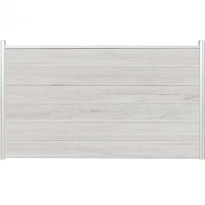 Schutting composiet co-extrusie Garda bi-color beige met blank aluminium kader (180 x 90 cm). Deze schutting wordt geleverd als een zelfbouw pakket waarmee je zelf een unieke schutting kunt maken.