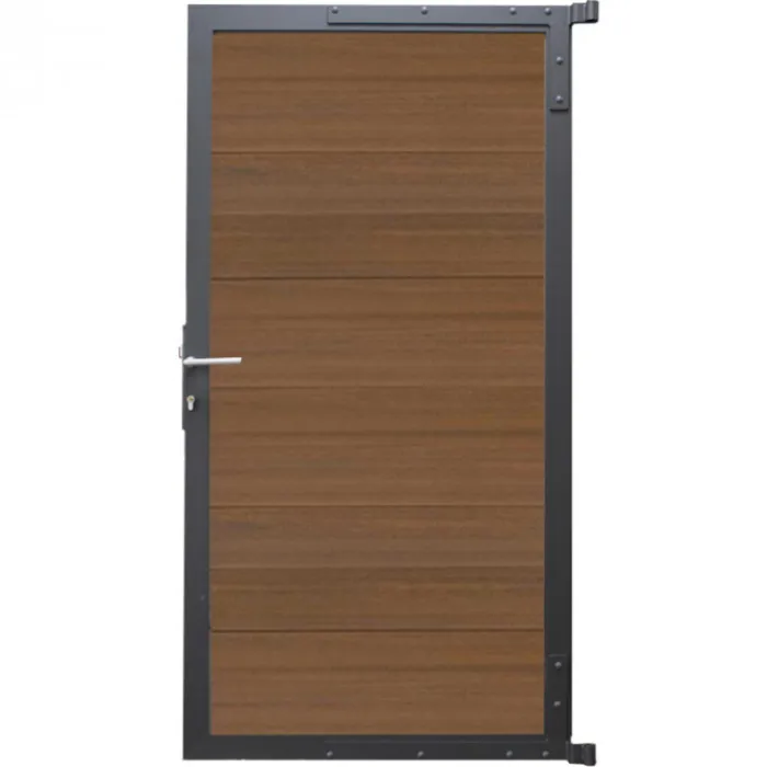 C-Wood tuindeur composiet Mix & Match frame aluminium antraciet gepoedercoat (90 x 180 cm). De netto hoogte van deze tuindeur is enkele centimeters lager dan de opgegeven 180 cm. Deze komt uit op 175 cm hoog. De deur wordt geleverd inclusief deurbeslag.