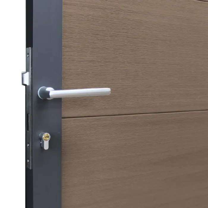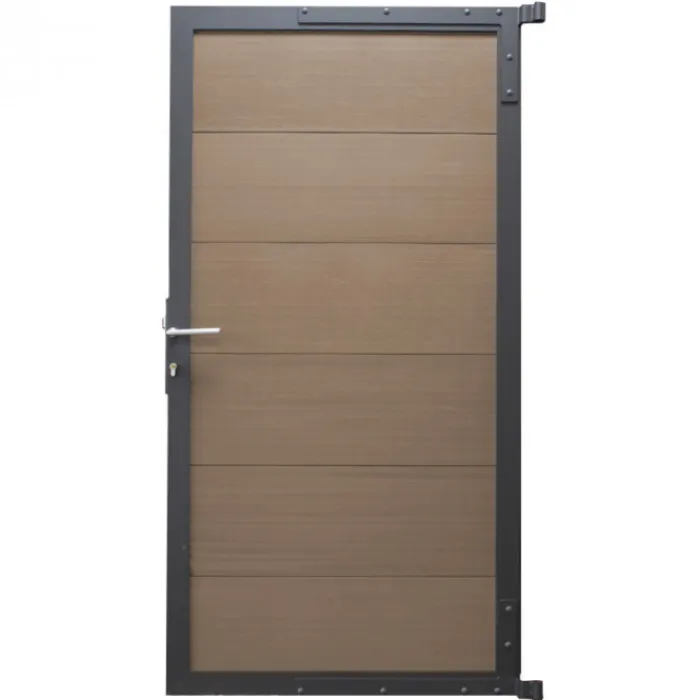 C-Wood tuindeur composiet Mix & Match frame aluminium antraciet gepoedercoat (90 x 180 cm). De netto hoogte van deze tuindeur is enkele centimeters lager dan de opgegeven 180 cm. Deze komt uit op 175 cm hoog. De deur wordt geleverd inclusief deurbeslag.