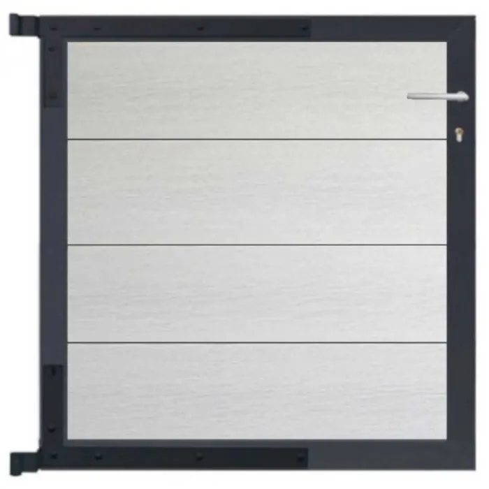 C-Wood zelfbouw tuinpoort aluminium antraciet frame Modular – composiet wit. Afmeting 90 x 90 cm. De poort wordt geleverd inclusief deurbeslag.