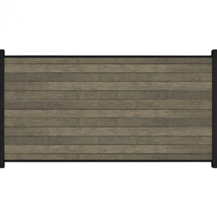 C-Wood zelfbouw schutting composiet Rhombus Double grijs met antraciet alu accessoires. Geschikt om een scherm te maken van 90 cm hoog en maximaal 180 cm breed. De breedte is eenvoudig in te korten.