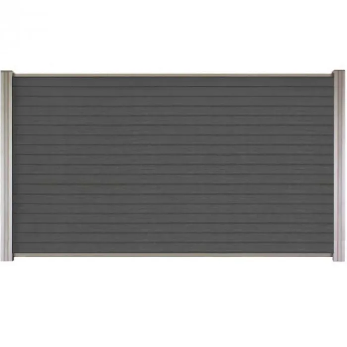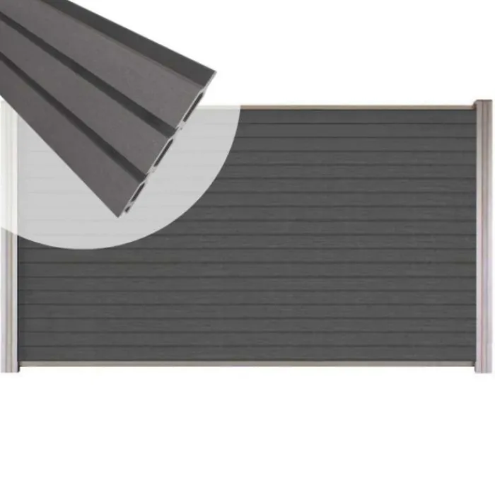 C-Wood zelfbouw schutting composiet Rhombus Triple rock grey met blank aluminium accessoires. Geschikt om een scherm te maken van 90 cm hoog en maximaal 180 cm breed. De breedte is eenvoudig in te korten.